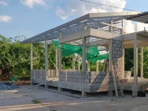 อิฐคูลบล็อก รุ่น 409 และ 40M หน้างาน คาเฟ่ จังหวัดชลบุรี อิฐคูลบล็อกก่อผนัง ทั้งหลังเพื่อช่วยเป็นฉนวนกันความร้อน ลดค่าไฟฟ้า ประหยัดไฟ